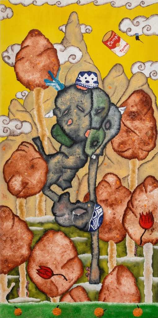 « Thérapie », 2023, huile et acrylique sur toile, 70 cm x 40 cm. Crédits photo : M+B Gallery.