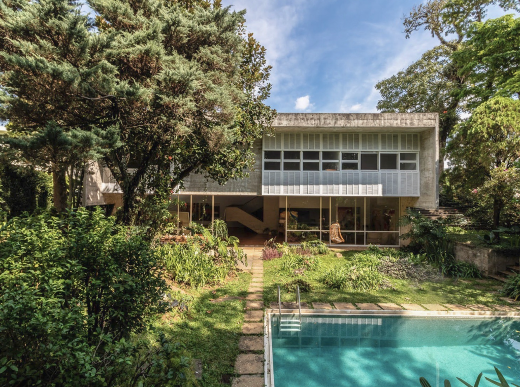 Il me parle de cette villa et de la vie au Brésil avec des étoiles dans les yeux. Il se sent bien dans son atelier, on lu fournit de quoi peindre, les rencontres sont magnifiques, il fait beau, la fête est divine au Brésil… La villa en elle même est somptueuse : la Domo Damo est une propriété inspirée du style d’architecture brutaliste datant des années 50, popularisé par Le Corbusier.