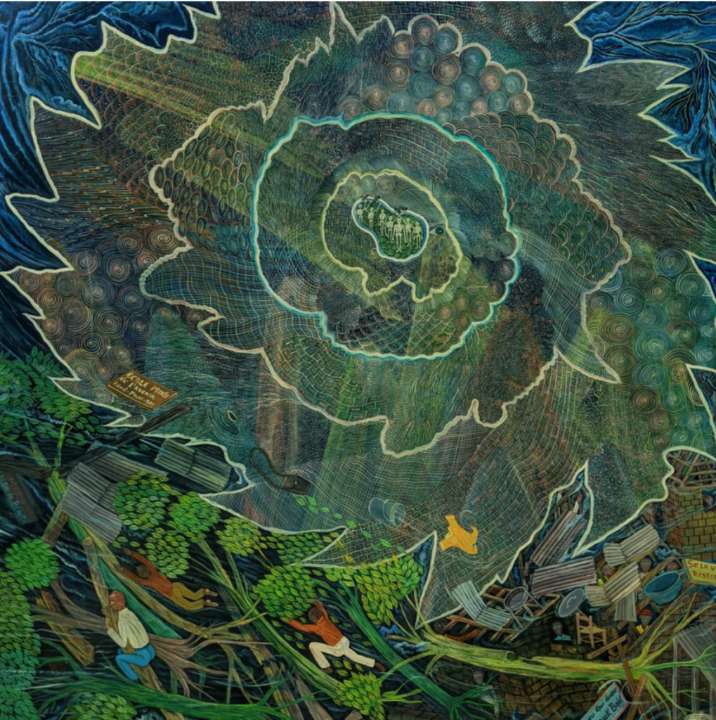 Frantz Zephirin, « Hurricane Matthew », 2021, peinture acrylique sur toile, 152 x 154cm. Crédits : Galerie Monnin.