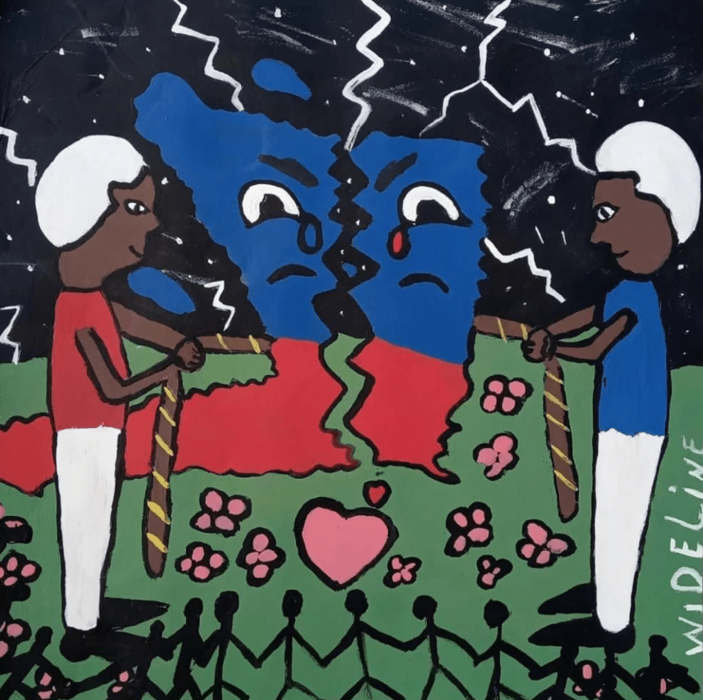 Peinture de Wideline, sur la crise à Haïti.