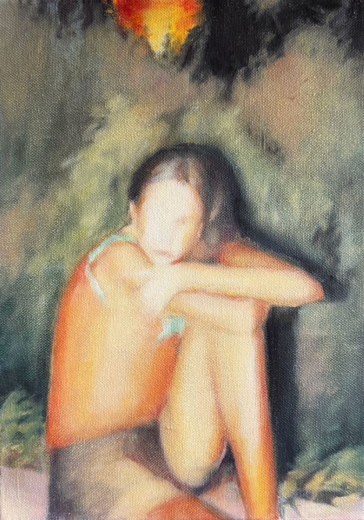 Je l’ai peinte à mon arrivée aux Beaux-Arts. J’étais alors en phase de préparation, et utilisais des photos de mon téléphone comme des fragments de mémoire – une manière d’apporter un peu de profondeur, de familiarité, dans un Paris qui m’était encore inconnu.