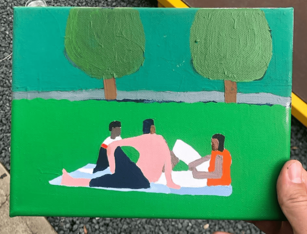 Peindre et exclusivement peindre devient comme revanche sur l’école des Beaux-arts (qu’il a quitté un peu froissé) ; motivé par l’envie de « leur montrer ! ». Et c’est également à ce moment là qu’il découvre le tufting – et que ses oeuvres textiles commencent à devenir une source de revenus qui permet une certaine stabilité mais surtout confiance, je crois, dans ce projet qu’il construisait.