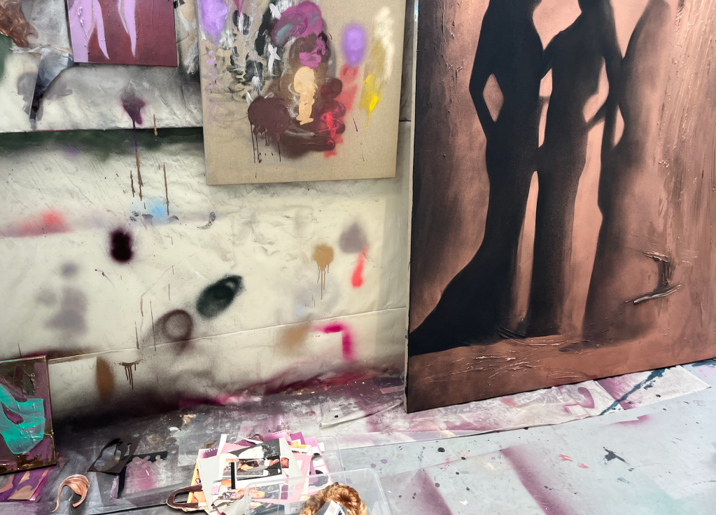 A l’aide de peinture, de pochoirs, de photos, de dessin, d’eau forte et de sérigraphie, Julia travaille la figure féminine et ce que les mythes autour des femmes disparues renferment. Lorsque j’ai essayé de comprendre ce que signifiait « missing girl » je lui ai demandé si on pouvait comparer la figure de cette femme qui disparait aux romans américains de John Green ou à la série qui avait tant fait parler 13 reasons why. C’est très américain, mais comme l’initiation à la sérigraphie pour Julia ou son intérêt pour le « coming of age », sujet qui a marqué son travail antérieur. C’était la fille, maintenant la femme qui intéresse Julia.
